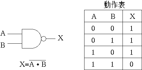 - 入力A,BがともにHのときのみ出力XがLになります.